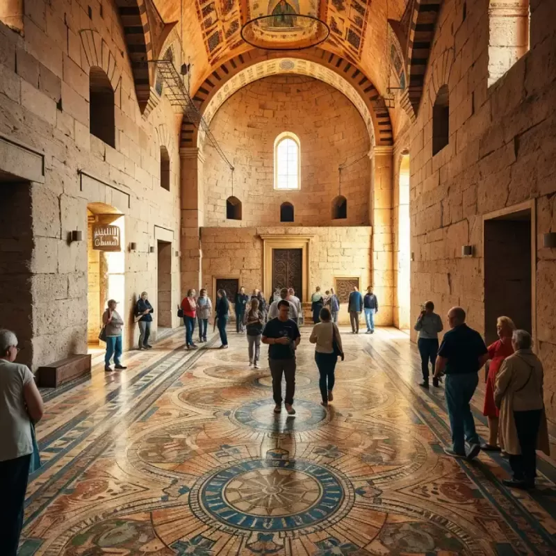 Après votre prise en charge à votre hôtel à Amman, vous partirez pour un trajet d’environ 30 km en direction de Madaba, une ville réputée pour ses anciens mosaïques byzantines. Vous y visiterez la célèbre carte de la Terre Sainte du VIe siècle, située dans l’église Saint-Georges. Cette impressionnante mosaïque, composée de deux millions de petites pierres locales colorées, représente avec précision les collines, vallées, villages et villes de Palestine, ainsi que le delta du Nil.